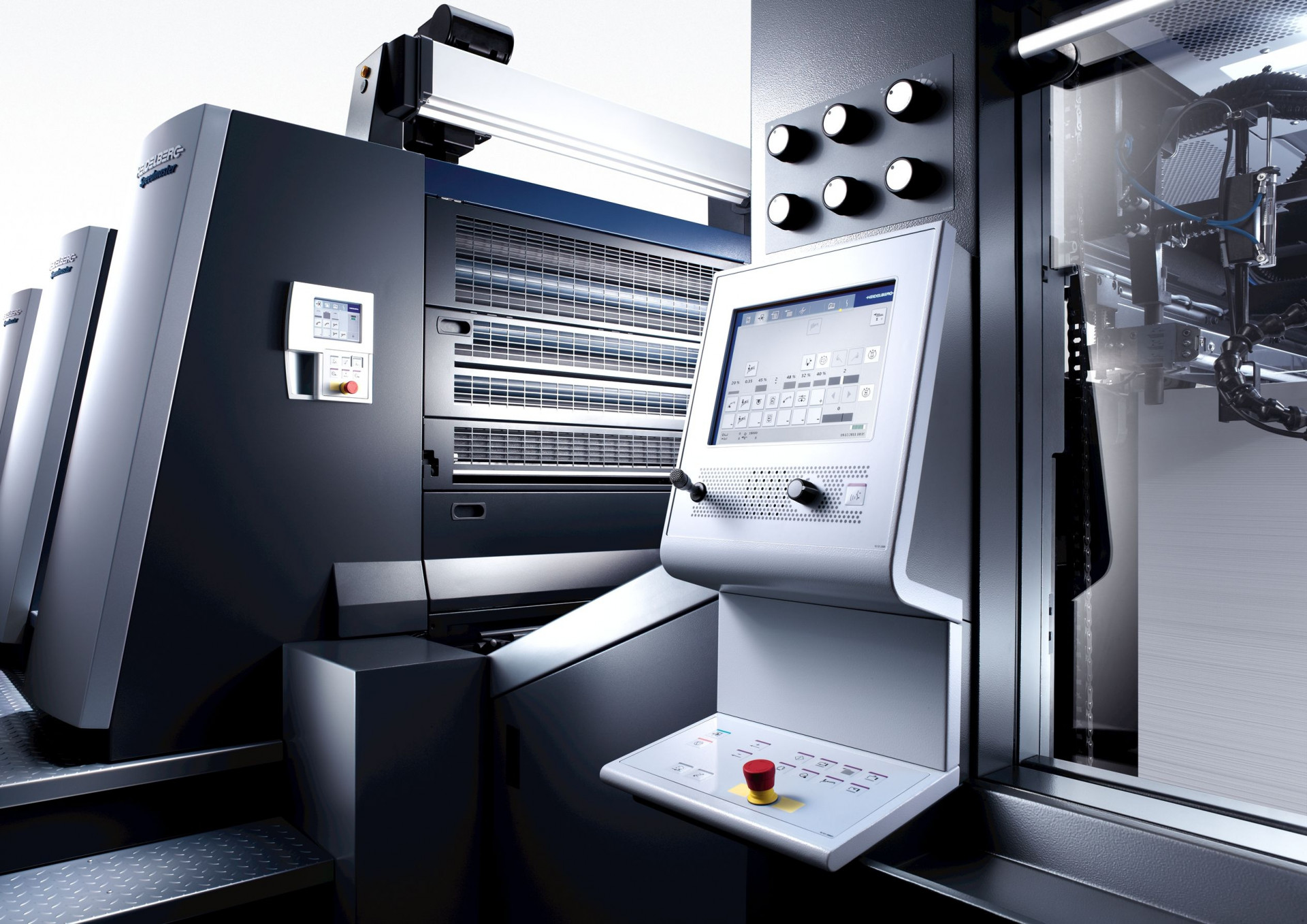 The control of the printed sheets during production takes place at the high-performance control station with Axis Control, a system for the spectral color measurement of the complete print sheet.