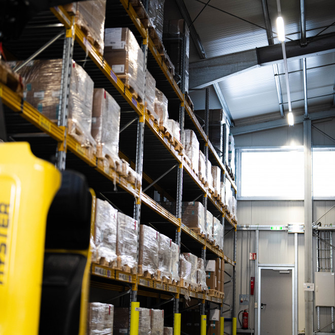 The new warehouse with 700m² will be used for the storage of raw materials and finished goods, thus expanding the production area in the existing building. It offers space for 500 pallets, 200 paper rolls and 300 paper pallets...