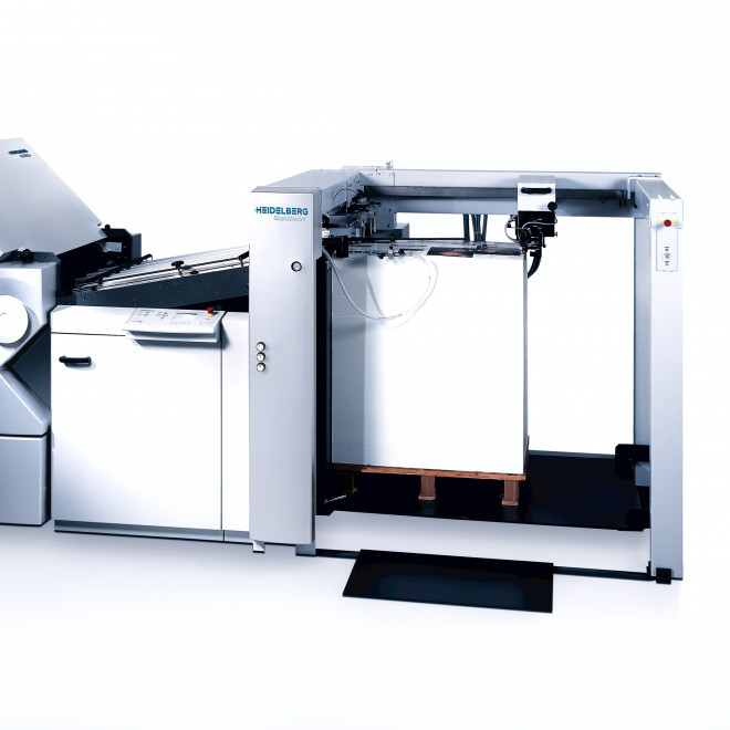 This new folding line consists of a folding machine modified for very thin papers with 4 folding pockets and a pallet feeder for very large sices...